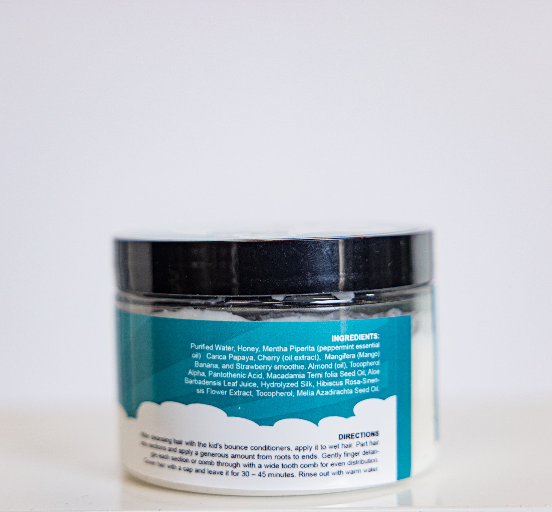 Purified Water, Honey, Mentha Piperita (peppermint essential oil), Carica Papaya, Cherry (oil extract), Mangifera (Mango) Banana, and Strawberry smoothie. Almond (oil), Tocopherol Alpha, Pantothenic Acid, Macadamia Terni folia Seed Oil, Aloe Barbadensis Leaf Juice, Hydrolyzed Silk, Hibiscus Rosa-Sinensis Flower Extract, Tocopherol, Melia Azadirachta Seed Oil.