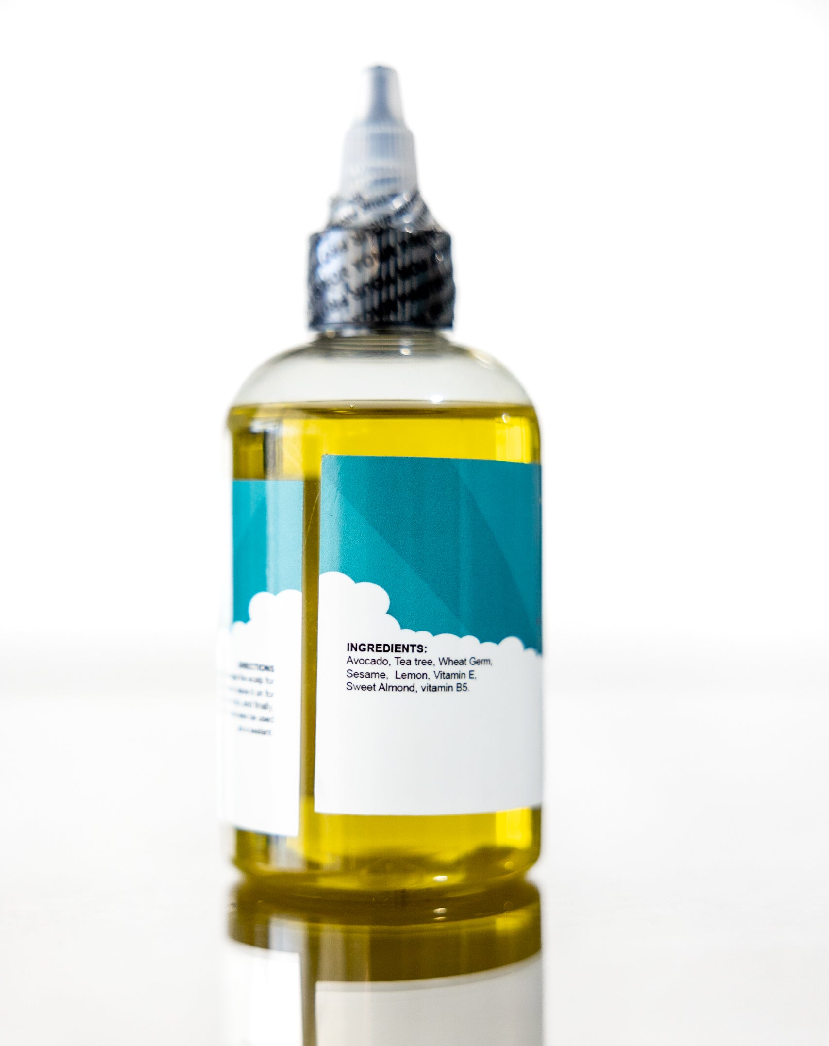 Avocado, Sweet Almond, Wheat Germ, Sesame, Tea tree, Lemon, Vitamin E, vitamin B5.
