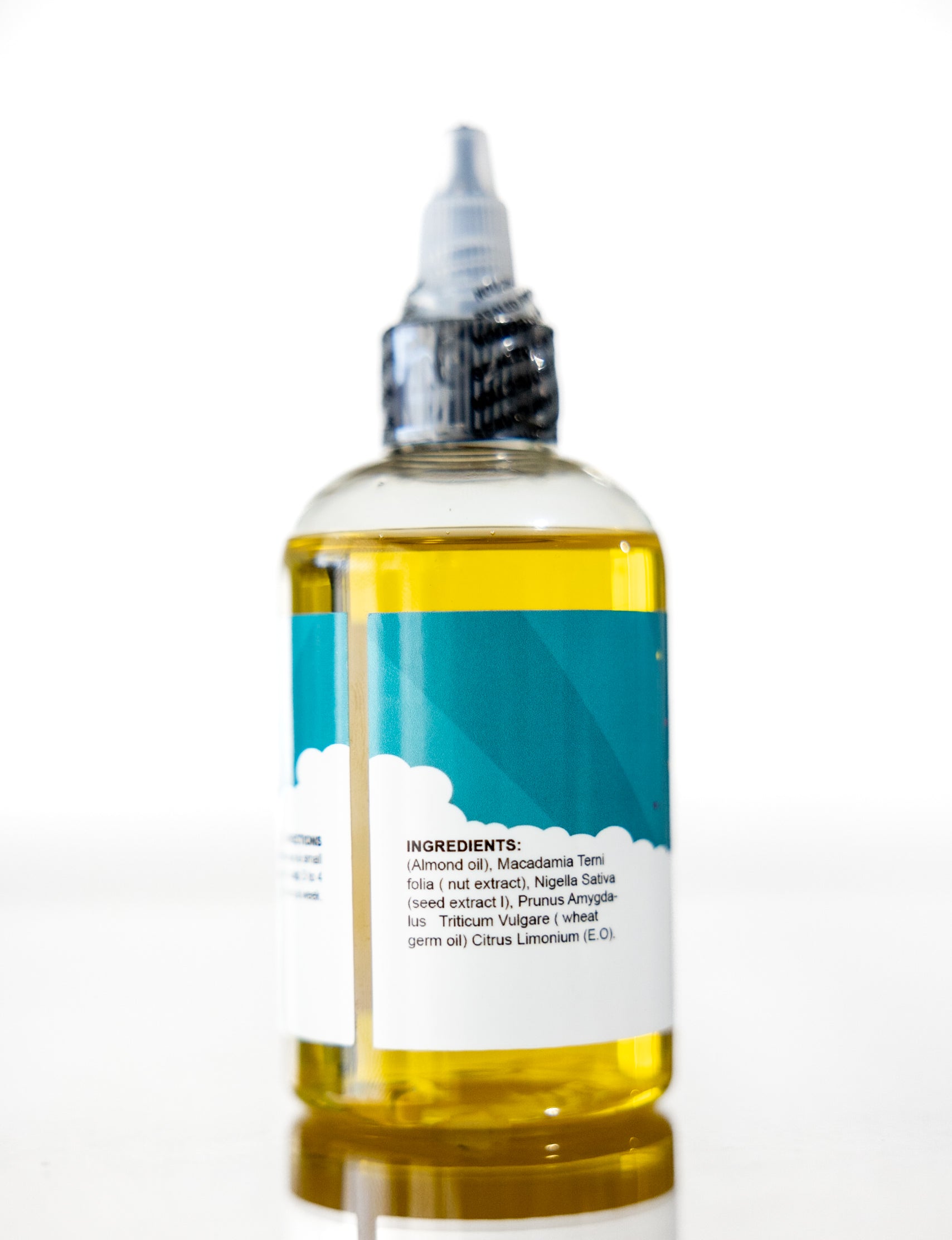 Nigella Sativa (seed extract l), Prunus Amygdalus ( Almond oil), Macadamia Terni folia ( nut extract) , Triticum Vulgare ( wheat germ oil) Citrus Limonium (E.O).